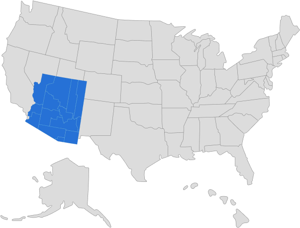 The state of Arizona can be found in the southwest region of the United States. Of all states, Arizona is the 6th largest with a total area of Arizona 113,990 square miles. Also, a total population of 7,278,717 inhabitants makes the state the 14th most populous in the United States. The capital of Arizona is Phoenix.
